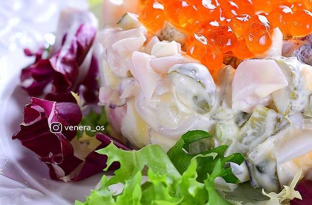 Как приготовить Салат кальмары с яйцом, огурцом и луком рецепт пошагово