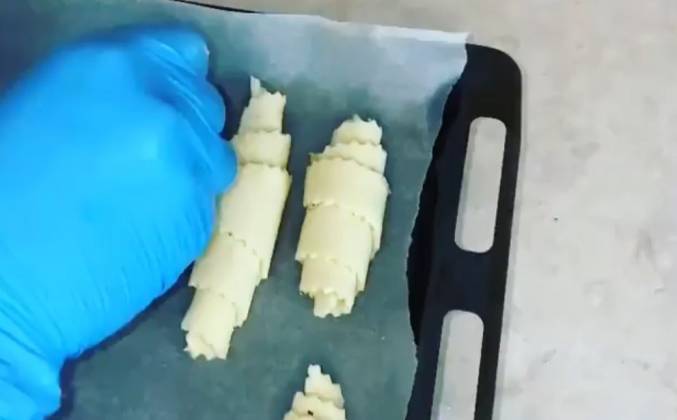 3. Разогрейте духовку до 180 градусов, застелите противень пергаментной бумагой. Выпекайте рогалики около 30 минут при 180 градусах до появления румяной корочки. После можно оставит рогалики как есть или посыпать сахарной пудрой. Приятного аппетита.Видео рецепт ютуб ниже 👇