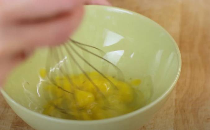 2.  Займемся подготовкой лука: для этого очистим сначала его и нарежем лук кольцами. Лучше сделать их примерно по 4мм в ширину. Выдавим отсюда луковые колечки. Кляр у нас подстыл. Ставим сковородку на сильный огонь и хорошо заливаем все дно сковородки подсолнечным маслом. Итак, начинаем готовить луковые кольца. Возьмем вилочкой лук, обмакнем его в кляре и теперь будем обжаривать на сковороде с двух сторон до золотистой корочки.