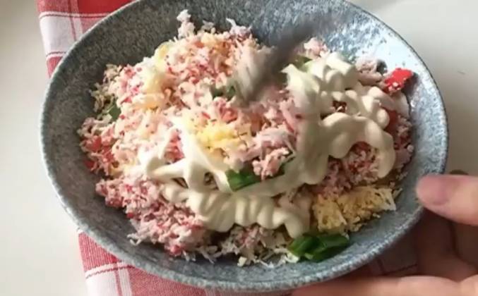 1. Сыр, яйцо, палочки натереть на терке. Лук измельчить.