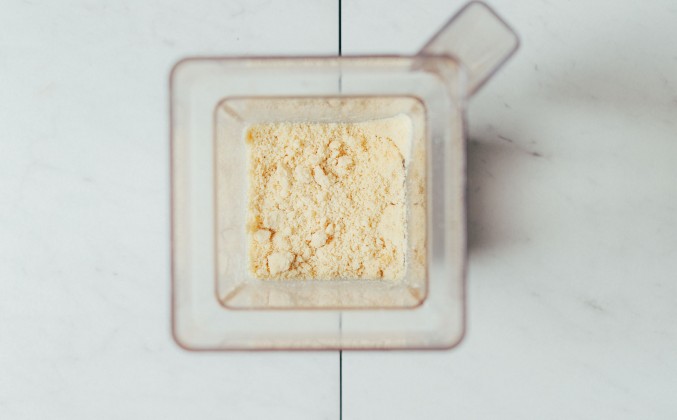 2. Снова перемешайте до получения однородной массы и получайте пудру - всего около 10-15 секунд смешивания. Вы узнаете, что зашли слишком далеко, если оно начнет превращаться в миндальное масло или слипаться по бокам. Проверьте свой блендер на наличие кусочков орехов и продолжайте смешивать, периодически снимая края с чаши блендера, встряхивая в основание, чтобы убедиться, что все миндаль хорошо перемешан.