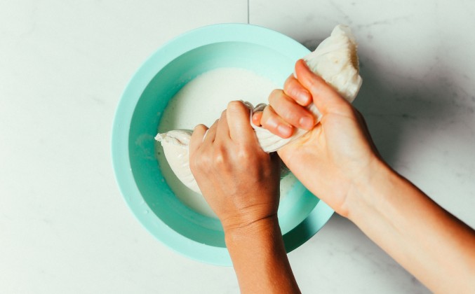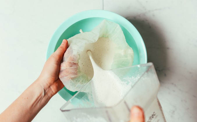 3.  Затем процедите, сжимая очень хорошо, пока не останется в основном мякоть - это может занять несколько минут. На этом этапе молоко готово к употреблению как есть, или его можно хранить в холодильнике до 4-5 дней (иногда - вы узнаете, свежее ли оно по запаху).