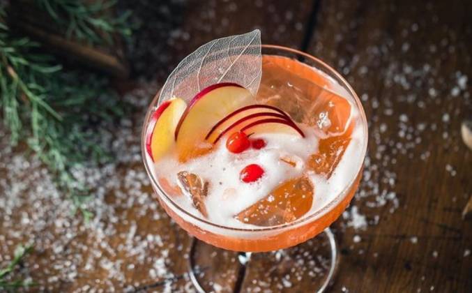 3. Подать можно со слайсами свежего яблока и красными ягодами, дополнить имбирным пивом.
