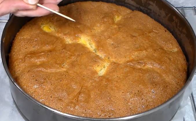 3. Сверху выкладываю персик, порезанный дольками. Подготовленную форму ставлю в заранее разогретую духовку, до 170 градусов. Предварительное запекание пирога 60 минут. Готовность пирога будем проверять зубочисткой или деревянной палочкой. Пирог выпекался 60 минут. Зубочистка сухая полностью. Даем ему немного остыть и будем вынимать из формы. Пирог с персиками готов!Видео рецепт ютуб ниже 👇