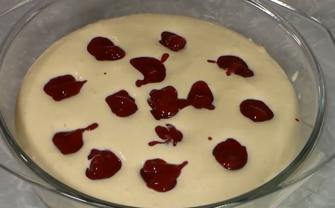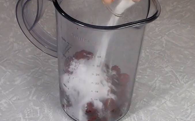 2. Будут сбивать их в устойчивую пену. Во взбитые сливки буду вливать постепенно сгущенное молоко и продолжать взбивать. полученную взбитую массу переливаю в форму. Добавляю перетёртые ягоды. Слегка перемешиваю. Закрываю пищевой пленкой и отправляем в морозильную камеру, для охлаждения.