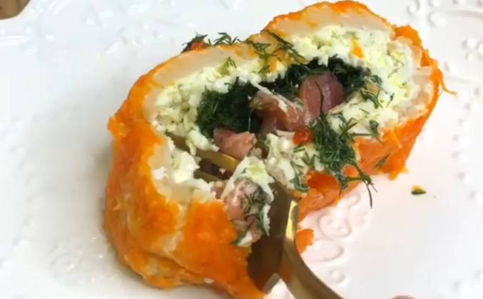3. Украшаем красной икрой по желанию. Приятного аппетита.Видео рецепт ютуб ниже 👇