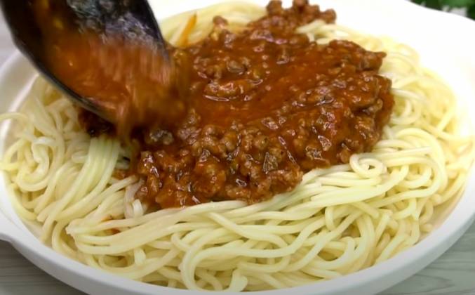 Макароны в томатно мясном соусе болоньезе