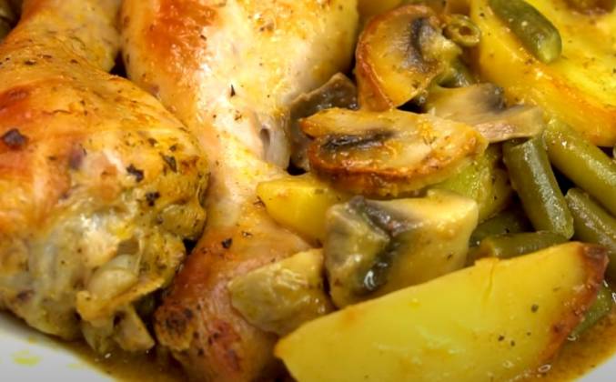 Как приготовить Картофель с курицей и шампиньонами в сметане в духовке рецепт пошагово
