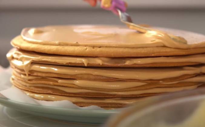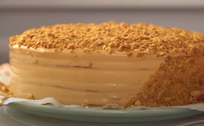 4. Обрезки измельчить в крошку при помощи блендера или можно сложить их в пакет и помять скалкой. На каждый корж выложить примерно две полных столовых ложки крема (постарайтесь рассчитать так, чтобы хватило на все коржи и обмазку). Готовый тортик покрыть кремом со всех сторон и посыпать крошкой, убрать в холодильник для пропитки минимум на 4 часа, а лучше на ночь. При желании посыпать обжаренными грецкими орехами и зернами граната.Видео рецепт ютуб ниже 👇