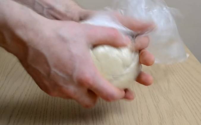 3. Следующее, что можно сделать - взять пакет или пищевую плёнку и приложить тесто в плёнку, выпустить весь воздух, герметично закрыть. Оставляем тесто чтобы оно подошло - полтора-два часа может быть больше, это зависит от того как хорошо месили мы тесто. Друзья прошло два часа тесто готовое. Посмотрите какой мягкое нежное получилось не составит труда чтобы его тонко раскатать.Видео рецепт ютуб ниже 👇