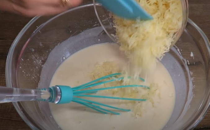 Сегодня готовим очень вкусные и сытные сырные блины с зеленью на сковороде рецепт Люда Изи Кук. Это замечательный быстрый завтрак для всей семьи, который никого не оставит равнодушным, особенно любителей сыра и блинов! И я рекомендую такие блины подавать со сметаной. Это очень вкусно! Для того чтобы приготовить эти замечательные очень вкусные блины мне понадобится: 500 миллилитров молока, 2 яйца. И молоко, и яйца должны быть комнатной температуры. 180 грамм муки, 20 грамм кукурузного крахмала (можно заменить картофельным крахмалом). Блины у меня сегодня сырные, поэтому я использую сыр моцарелла - 150 грамм (можно заменить любым твердым сыром). 1 чайная ложка сахара, пол чайной ложки соли, 20 грамм растопленного сливочного масла.