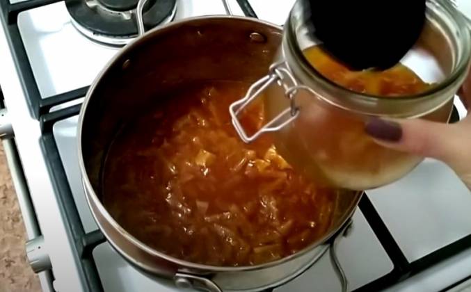 2. После закипания варим на медленном огне при небольшом кипении 1,5-2 часа, пока корочки не размокнут. Я варила 1,5 часа. Затем насыпаем 750 грамм сахара. Перемешиваем, чтобы сахар растворился. Доводим до кипения. Увариваем на самом маленьком огне при небольшом кипении до загустения, периодически помешивая. Я варила 1 час 20 минут, помешивая каждые 5-7 минут.