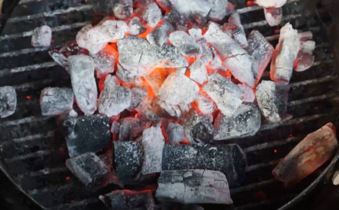 2. Теперь курицу можно подвесить В ту по которому я готовлю указано, что курицу можно либо обвязать, либо подвесить на крюк зацепленный за грудную часть. Щуп в самую толстую часть грудки. Крышку на место. Теперь запекаю один час при температуре 120 градусов. пока подготовлюсь к копчению - горсть щепы на фольгу - у меня пекан. Годится щепа деревьев лиственных пород - дуб, бук, ольха, груша, яблоня пробить несколько отверстий Подготовился. Если положить эту штуку на угли - щепа будет тлеть но не загорится, потому что кислорда внутри мало. Удобная штука такой термометр - сразу четыре термощупа можно использовать - красота!