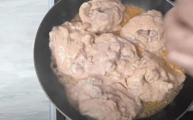 1. Для этого берем либо целую курицу, разделанную на части, либо какие-то части курицы, какие вам больше нравятся, хоть голени, хоть окорочка, хоть даже крылышки. Вот у меня сегодня бедро, здесь 6 штук. Складывайте сразу это все в контейнер, который можно будет закрыть крышкой. Курицу заливаем кефиром. Процент жирности кефира здесь не имеет значения и кефира нужно ровно столько, чтобы курица полностью в нем была, то есть полностью была покрыта. Кладем соль по вкусу и любые ваши приправы. Я беру универсальную приправу для курицы 2 чайные ложки с горкой.