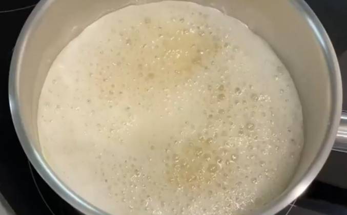 2. Когда сироп достигнет 125 градусов - в отдельной емкости начинаем взбивать белок. Когда взбили до пышной устойчивой пены - добавляем оставшиеся 10 г сахара и взбиваем до пиков. Продолжая взбивать, по чуть-чуть вливаем горячий сироп. Когда масса загустеет - добавляем растопленный шоколад и снова взбиваем до загустения. ⠀