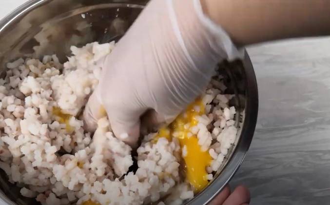 2. У меня прошел час, теперь в фарш добавляем соль, перец и у меня универсальная приправа для рыбы. Можете добавить любые ваши приправы и специи. Теперь все хорошо перемешиваем и добавим две столовые ложки муки. Одна у меня уже есть, кладу вторую с небольшой горкой. Еще раз всё хорошо перемешиваем. Если, вдруг, у вас рыба замороженная использовалась. Если, вдруг, фарш получился жидковатым, не переживайте, добавьте либо ещё ложку муки, либо ложку панировочных сухарей.