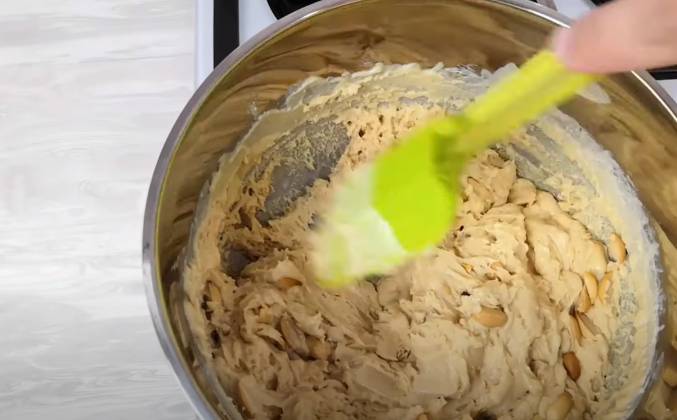3. И что хочу сказать, когда орехи добавили в эту массу, она прям сразу начала так кристаллизоваться, начала быстро схватываться, поэтому здесь очень, очень быстренько перекладываем, разравниваем и всё, отставляем в сторону, чтобы она остыла и застыла. Времени на это потребовалось совсем немного, часа наверно, три, может быть 4. Вот честно, не посмотрела на часы)) Достаем из формы. Сейчас вам покажу, какая там у нас внутри получилось штучка)) Смотрите, достаточно крепкая, очень вкусный, ребята, получился! Знаете, это вкус советского щербета, который продавался в магазине. Очень вкусно, дети оценили!Видео рецепт ютуб ниже 👇