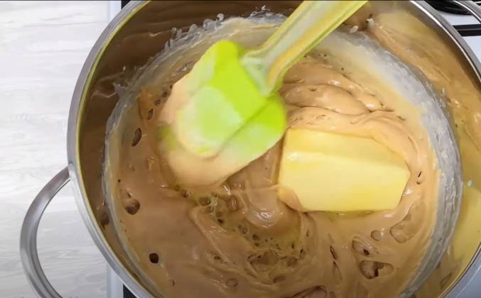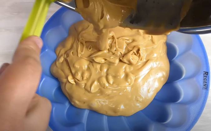 3. У меня всего было 300 грамм орехов. Я использовала 150 грамм в первом случае и 150 грамм во втором случае. Но, повторюсь, орехи могут быть любые, у меня жареный арахис. Можно и вообще без орехов, если вы их не любите. И перекладываем тоже в форму. Эта масса так быстро не схватывается. Видите, да, она такая тягучая, густая карамель. Все разравниваем и оставляем остыть и застыть. Эта масса немножко дольше остывала и застывала. И вот смотрите, что у нас получилось.Видео рецепт ютуб ниже 👇