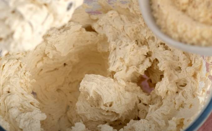 5. Поломайте остывший грильяж и измельчите его в мелкую крошку. Продолжим приготовление КРЕМА. Взбейте сливочное масло (200 гр). Постепенно (в 3-4 этапа) добавляйте к маслу остывшую до комнатной температуры кофейно-молочную смесь и взбивайте. Добавьте к крему 2/3 измельченого грильяжа и перемешайте. Соберите на сервировочной тарелке и украсьте торт.Видео рецепт ютуб ниже 👇