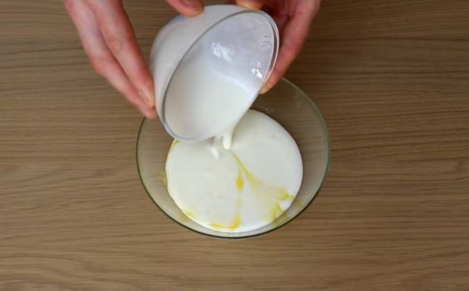 2. Добавлю немного соли, чтобы белок лучше взбился. Дальше нужно взбить белок, любым доступным способом, я это сделаю в ручную а вы сделайте это с помощью электрического миксера. В этом видео дам ещё один совет - как сделать оладьи, чтоб они были ещё нежнее. Но это чуть позже. Отлично, белок уже взбит, этого достаточно. Поехали дальше. Наступила финальная стадия приготовление теста. Смешиваем все продукты, кроме взбитого белка. Аккуратно перемешиваем до однородной массы, белок будем добавлять в тесто, непосредственно перед тепловой обработкой то есть когда будем жарить оладьи. Вот такая должна получается густота теста. Сейчас будем вводить белок в тесто. Белок делает тесто воздушным и за счёт этого, оладьи будут нежными.