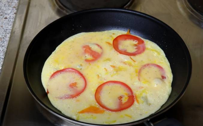 Как приготовить Омлет с помидорами на сковороде рецепт пошагово