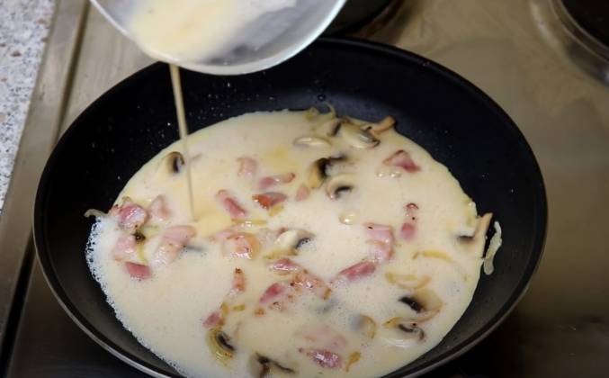 Омлет с беконом на сковороде