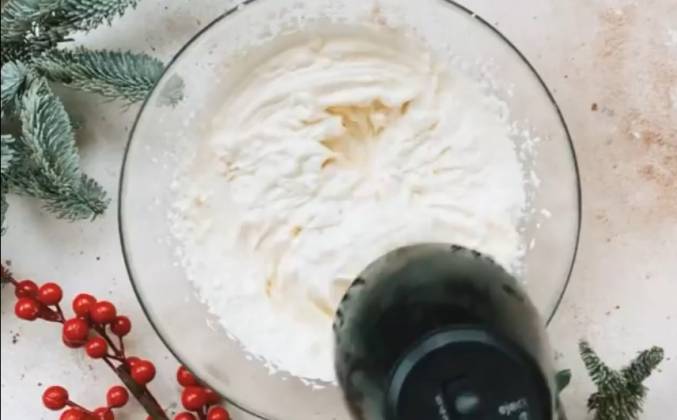 3. Для крема разотрите творог с сахарной пудрой ложкой. Отдельно взбейте сливки (холодные в чистой емкости). По ложке добавьте творог в сливки и взбейте до однородности. Аккуратнее со сливками, не перевзбейте их.