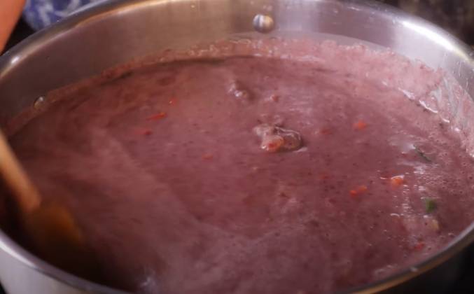 2. Тут можно действовать на свой вкус. И в пыль все разбить, либо оставить часть фасоли кусочками кому как нравится. Веточку розмарина сюда - если нет свежего, можно и сухого добавить. Теперь сливок - и кипятка до желаемой густоты. Кто то предпочитает погуще, кто-то пожиже что тут с фрикадельками? - Отлично В кастрюлю их. Надо добавить яркости. За яркость у меня отвечает острый перец - прямо с семечками, чтобы до пяток прошибало и сладкий перец. В кастрюлю их. И сразу посолить…. И лавровый лист сюда же. Через 5 минут супец будет готов.