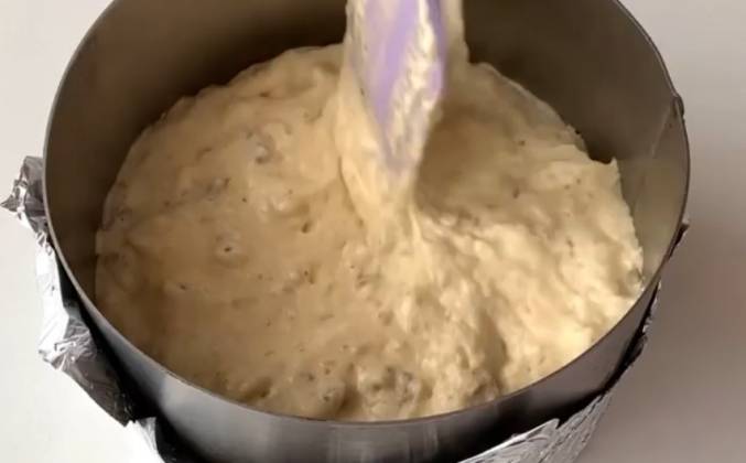 2. Переливаем в форму 16 см, немного разравниваем лопаткой и выпекаем при 170 градусах 40 минут. Неровную верхушку бисквита срезаем, она нам понадобится. ⠀ Для крема к творогу добавим сливки и пробиваем до однородности. Затем мягкое сливочное масло с сахарной пудрой взбиваем до посветления. Добавляем наш творог, немного перемешиваем и добавим остывший растопленный шоколад, все перешиваем. ⠀