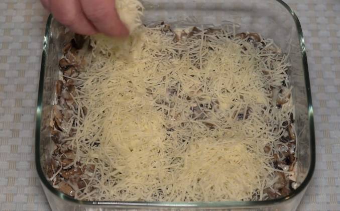 3. Осталась совсем малость, немного майонеза поверх грибов и немного сыра твердого натираем на мелкой терке сверху. Всё, многослойная композиция закончена. Очень вкусный, сочный и сытный слоеный салат готов, осталось только убрать на пару часов его в холодильник и можно подавать к столу. Прощаться же не будем, жду ваши комментарии и корректировки слоев, уверен многие из вас готовили нечто похожее и ни раз.Видео рецепт ютуб ниже 👇