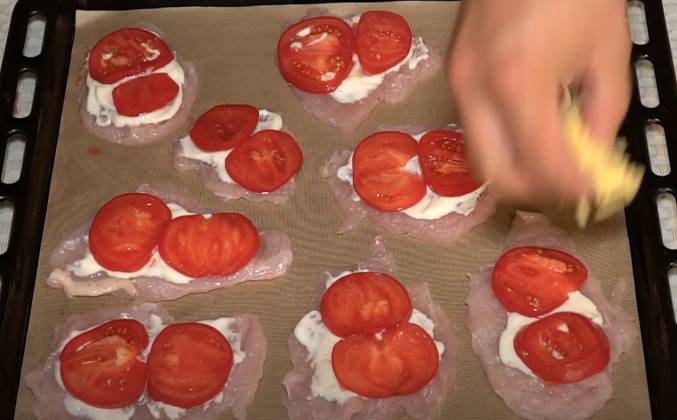 Мясо по французски в духовке куриного филе и помидор