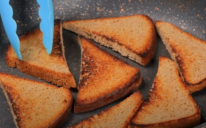 2. Сковороду разогреваю и смазываю каплей оливкового масла, обжариваю хлеб до золотистой корочки, конечно же, с двух сторон. Остывший обжаренный хлеб с двух сторон натираю чесноком, мне хватило половины большого зубчика. Еще мне понадобится соус похожий на майонез, я взяла греческий йогурт, у меня термостатный, поэтому такой густой, и смешала его с дижонской. Горчицей. По вкусу чуть-чуть досолила и добавила черный молотый перец Начинаю собирать бутерброды! Ломтик черного хлеба обжаренный, натертый чесноком, с одной стороны промазываю тонким слоем соуса, можно использовать обычный майонез. К
