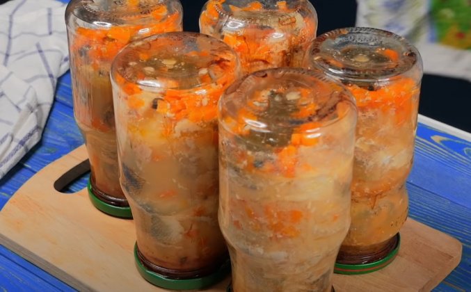 4. Готовую рыбу достаю из духовки, сразу же закрываю горячей крышкой, и аккуратно переворачиваю вверх ногами. Укутываю сверху и оставляю до полного остывания. После рыбные консервы храню в холодильнике. Одну баночку, я все-таки открою, покажу вам что же там внутри. Простояла она в холодильнике правда недолго, всего два дня. Вот такая красота! Много сочного ароматного бульона, мягкие, очень вкусные овощи. Ну и конечно же, сама рыба! Мягкая и сочная! Невероятно ароматная, за счет добавления Специй. Так что теперь, вкусная рыбка всегда у меня под рукой!Видео рецепт ютуб ниже 👇