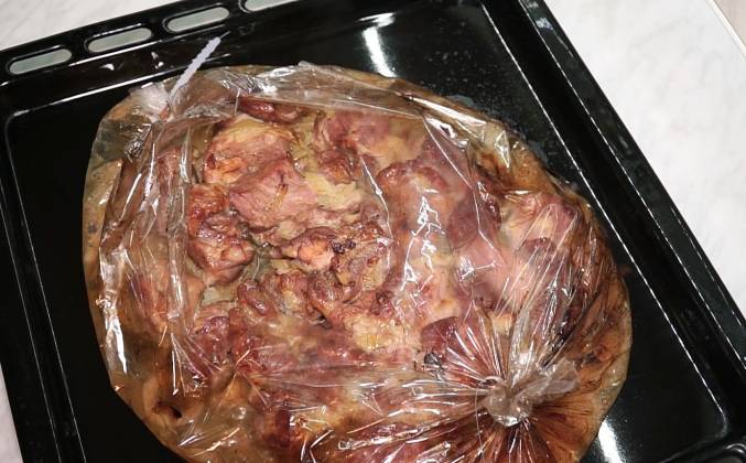 Как приготовить Шашлык в духовке в рукаве из свинины рецепт пошагово