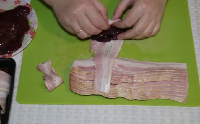 Как приготовить Печень индейки в беконе в духовке рецепт пошагово