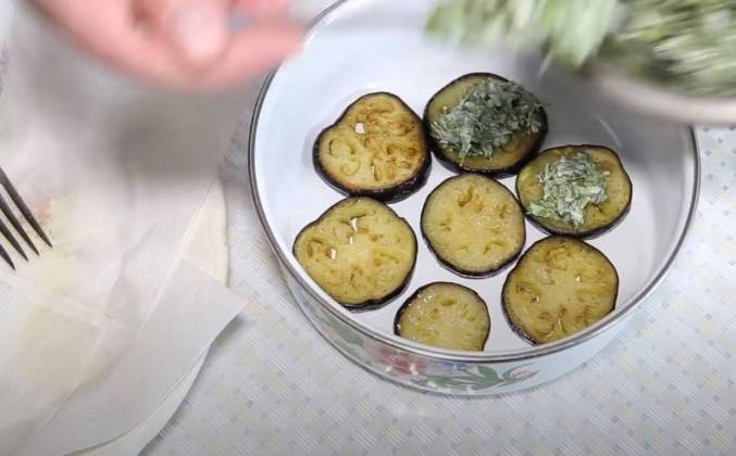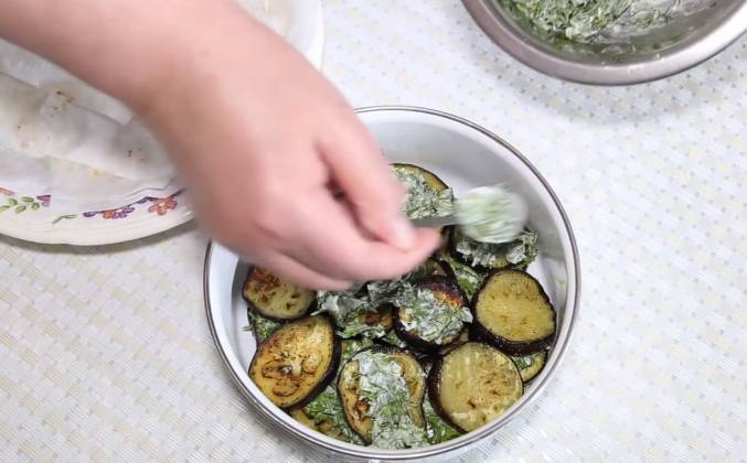 3. Кстати его потребуется много, наш овощ их очень хорошо вбирает в себя при жарке. Дале перекладываем в ёмкость для будущего хранения в холодильнике и слой за слоем покрываем заранее подготовленной смесью зелени. Осталось поставить на пару часов в холодильник для пропитывания жаренных баклажан.Видео рецепт ютуб ниже 👇