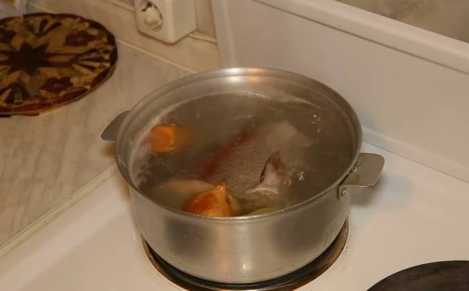 2. А пока приступим к подготовке наполнения для заливного. Нарежем колечками морковь, для красоты можно и ажурно, мы же сегодня сильно не заморачиваемся. Подготовим лимон четвертинками долек и листья петрушки. Перейдем к разделке рыбы, она как раз остынет, отделим мякоть от костей и кожуры. Разделим на мелкие части и разложим в емкость для будущего заливного. Тем временем бульон рыбный остыл немного.
