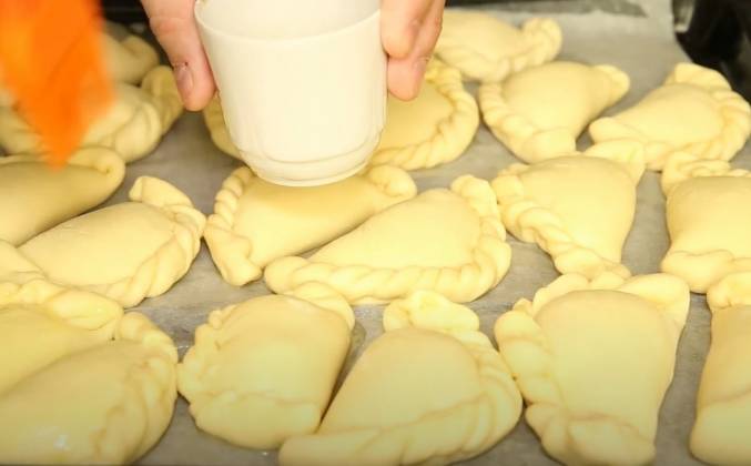 3. Такие сладкие слойки стоит укладывать на противне немного подальше от куриных конвертиков если они будут печься вместе, мало ли протекут в духовке. Вернемся же к конвертикам, на противне помажем сверху куриным яйцом для придания им будущей румяной корочки. В разогретую до 200 градусов духовку ставим противень на 15-20 минут. Конвертики из слоеного теста с курицей готовы.Видео рецепт ютуб ниже 👇