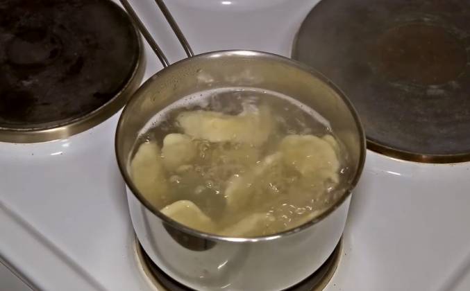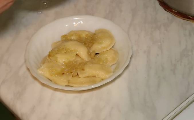 4. Думаю, что все вареники лепить на камеру мы не будем, а перейдем сразу к варке, хоть это и простой процесс, но пропустить его нельзя. Добавим соль и варим в кипящей воде минут 5, не больше, начинка то уже готовая, главное чтоб тесто проварилось, как раз они вспывут на поверхность. Далее нас ждет только последний штрих, помните мы оставили немного лука в масле, так вот когда вареники уже будут в тарелке, полейте этим луком сверху. Ух, пальчики оближите. Не забудьте про сметану когда будете наслаждаться этим объедением.Видео рецепт ютуб ниже 👇