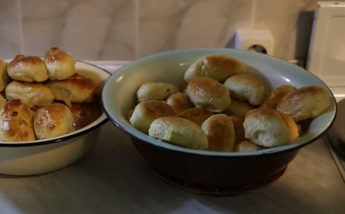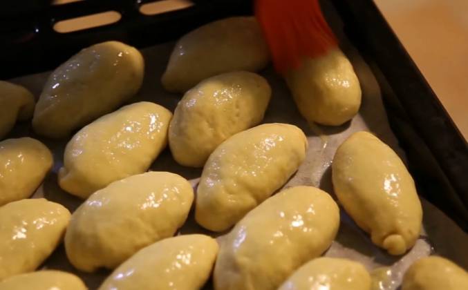3. Далее, загибая под углом слепляем шов. И вот очередной будущий пирожок с капустой и яйцом отправляется на противень. Как только налепим полный противень, возьмем сырое яйцо, разобьем его в чашку размешаем желток с белком и смажем кисточкой все пирожки сверху. Плита разогрета до 160 градусов, ставим противень на 15 минут. Вот такие красавцы у нас получаются в итоге. Внутри они сочные, тесто пышное и воздушное. Хранить их можно прям на кухне, просто необходимо чем-нибудь накрыть от заветривания. Правда, уверяю Вас, долго они не залежатся!Видео рецепт ютуб ниже 👇