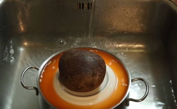3. В первые часы неплохо было бы поставить нашу емкость в очень теплое место, м ы ставим в раковину, набрав теплой воды, как для мытья посуды, градусов 30 примерно. Это неплохо начнет реакцию брожения. Далее капуста стоит у нас на кухне трое суток, на первые же сутки на поверхности образуется пена. Для уменьшения горечи тарелку с гнётом необходимо минимум раз в день, а лучше чаще, снимать и дать выйти газам от брожения. Если емкость большая, то неплохо проткнуть всю капусту. На третьи сутки квашенья на кухне, попробовав конечно прежде, мы достаем капусту и перекладываем в банки, для дальнейшего хранения в холоде. Теплой квашеная капуста не такая вкусна как прохладная.