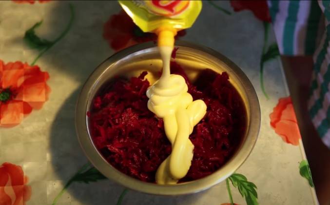 Приготовим вареную свеклу с чесноком и майонезом. Изумительная народная закуска. Делается она крайне просто.