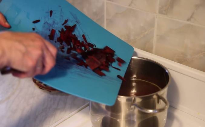 3. Возвращаем на огнь чистый бульон и начинаем закладку заранее приготовленных овощей. Первым делом кладем морковь, почему, да потому что ей без разницы сколько вариться. Далее режем свеклу в количестве одной средней штуки. Тоже сначала кольцами, разворачиваем и далее на мелкие палочки. Для того чтоб борщ не потерял будущий насыщенный цвет, берем четверть лимона и выдавливаем сок в любую емкость, не рекомендую давить сразу в кастрюлю, косточки из лимона могут выскочить прямиком в бульон. Только после этого к моркови в бульоне добавляем нашу свеклу. Оставляем суп дальше варится на огне, а пока займемся картофелем, нарезаем как вам душе будет угодно, мы же измельчаем его на средние палочки. Почему мы этого не сделали заранее, да потому что он темнеет на открытом воздухе, вот собственно и всё. Итого у нас примерно 1.5 кг картофеля. После свеклы в кастрюлю идет капуста и свеженарезанный картофель.