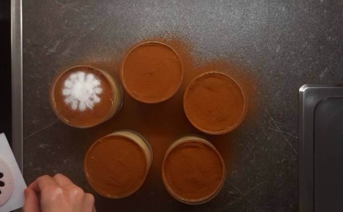 4. Каждый стакан я оберну пищевой плёнкой и уберу в холодильник на ночь. Никаких "2 часа", а на ночь. Украшать будем уже завтра. Вы сами всё видите, у меня крем закончился, а печенье осталось. На следующий день. У меня здесь примерно 20 г какао. И мы им обильно присыпаем. Знаете, 20 г вполне хватит. Кружок меньше, чем стакан. Беру вот такую бумажку и чистое ситечко. И сахарную пудру добавляю. Без комментариев. Думала, что будет чёткий рисунок, а он что-то вообще не чёткий. И я не понимаю, почему? Может кто знает? Подскажите мне, пожалуйста. Ещё я такие штучки купила. По-скольку у нас рецепт для взрослых, надо, чтобы что-то тут стояло. Ещё у меня такие банановые трубочки. Видите, размеры разные бывают. Друзья, наш великолепный Тирамису готов! Я его буду пробовать сидя, мало ли, может получу такое наслаждение, что с ног свалюсь.Видео рецепт ютуб ниже 👇