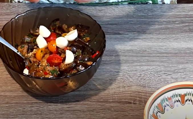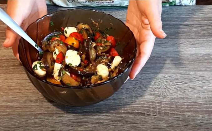 Как приготовить Теплый салат с баклажанами и помидорами рецепт пошагово