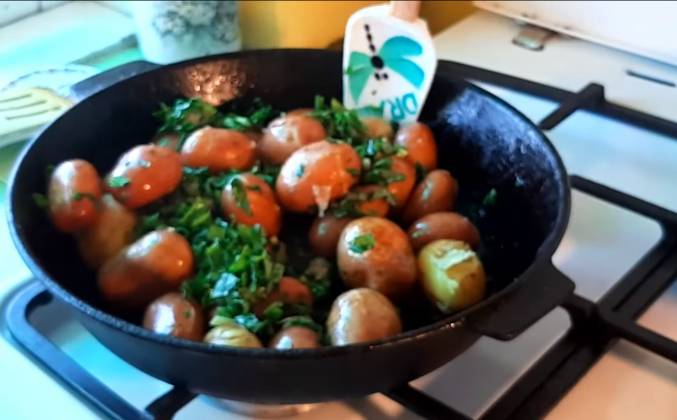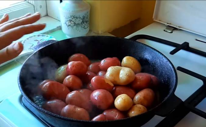 Вкусная картошка целиком на сковороде