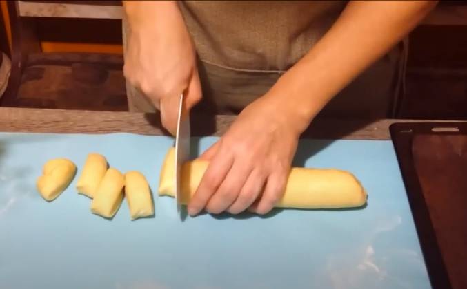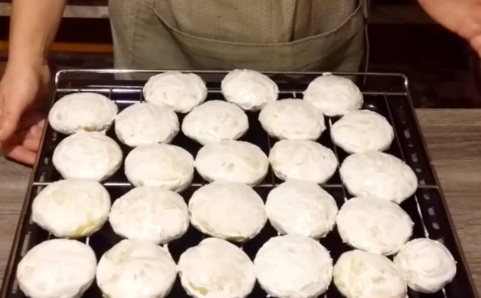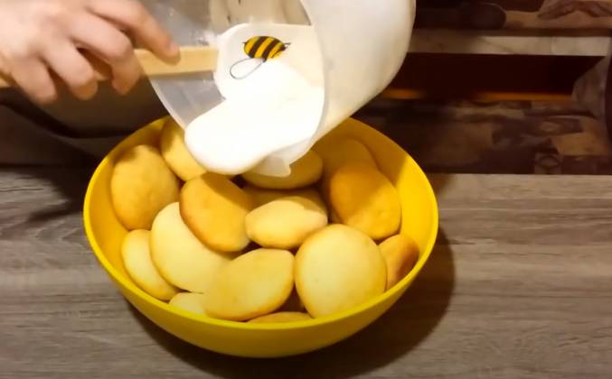 2. Для удобства делю его примерно на две части, из теста формирую колбаску и делю на равные кусочки, формирую пряники. Также тесто можно раскатать и вырубками выдавливать разные формы. Пряники выкладываю на противень застеленный пергаментной бумагой и на расстоянии примерно 2 сантиметра друг от друга. Пряники выпекаю в духовке, разогретой до 180 градусов. Пряники готовы, они выпекались примерно 20 минут и теперь даю им остыть до теплого состояния. Теперь я приготовлю глазурь. Для этого в белок я постепенно буду добавлять сахарную пудру с ванилином и также добавлю несколько капель абрикосовой эссенции, а вы если добавляли какую то другую в пряники то добавляйте также ее и в глазурь.