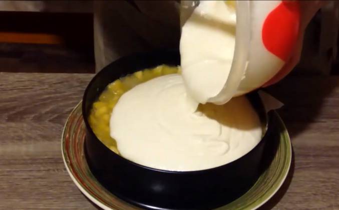 3. Добавляю сахарную пудру вместе с ванилином и также взобью. Теперь добавляем взбитые сливки и еще раз взбиваем. Желатин я растворила в микроволновке, импульсами по 10 секунд, каждый раз хорошо перемешивая. Также это можно сделать и на водяной бане, только следите, чтобы вы не перегрели желатин, и теперь хорошо взбивая, аккуратно вливаю желатин. Верхний слой у нас также готов и сразу же выливаю его на торт, распределяю, чтобы верх получился гладкий и уберу в прохладное место, чтобы последний слой также застыл. Аккуратно острым ножом провожу по бортам. Торт полностью застыл и я его извлекла из формы и вот так вот он выглядит. Можете украсить его какими-нибудь фруктами, а можете оставить просто так.Видео рецепт ютуб ниже 👇