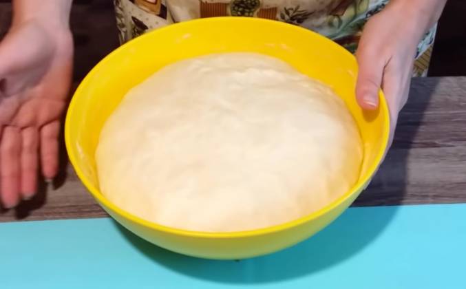 2. Сразу весь объем муки не добавляйте, оставьте примерно 150 из общей массы, чтобы потом постепенно подмешивать, возможно муки вам понадобится немного меньше, чем написано в рецепте. Тесто я хорошо вымесила, теперь миску я смазываю небольшим количеством растительного масла, выкладываю в нее тесто и ставлю в теплое место, чтобы оно подросло. Накрываем влажным полотенцем. И так тесто хорошо поднялось и теперь я буду делать пирожки. Часть пирожков я буду жарить, а часть я испеку в духовке и затем сравню, какие пирожки вкуснее и в каком варианте они дольше остаются свежими, так как этот рецепт именно обещает нам, что пирожки остаются свежими, вкусными и мягкими на протяжении нескольких дней. И так начинаю лепить пирожки.