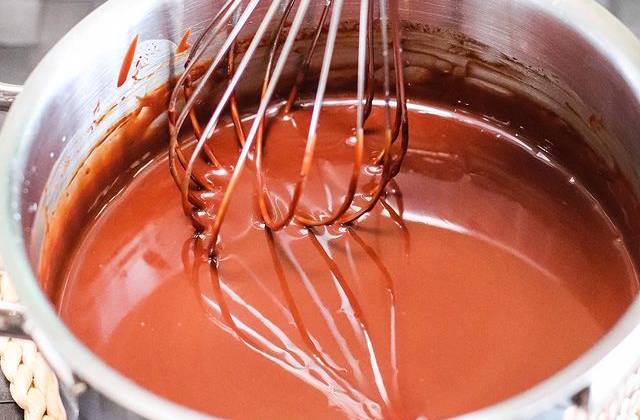 2. Добавить к сливкам шоколад и мешать венчиком до гладкой консистенции без комков.